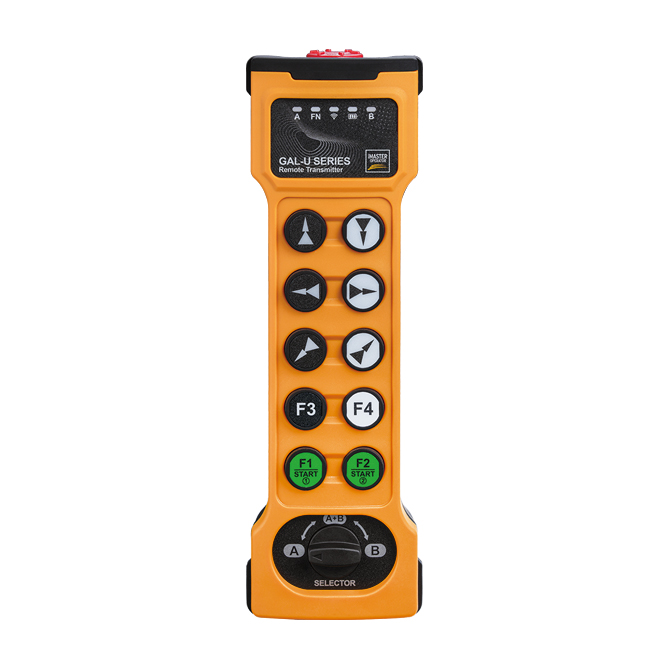GAL手持發射器裝配急停開關,可立即響應緊急停止機械設備的各種動作和操作。急停功能符合JB/T8437-2015,EN13849:cat.3,PLd標準。